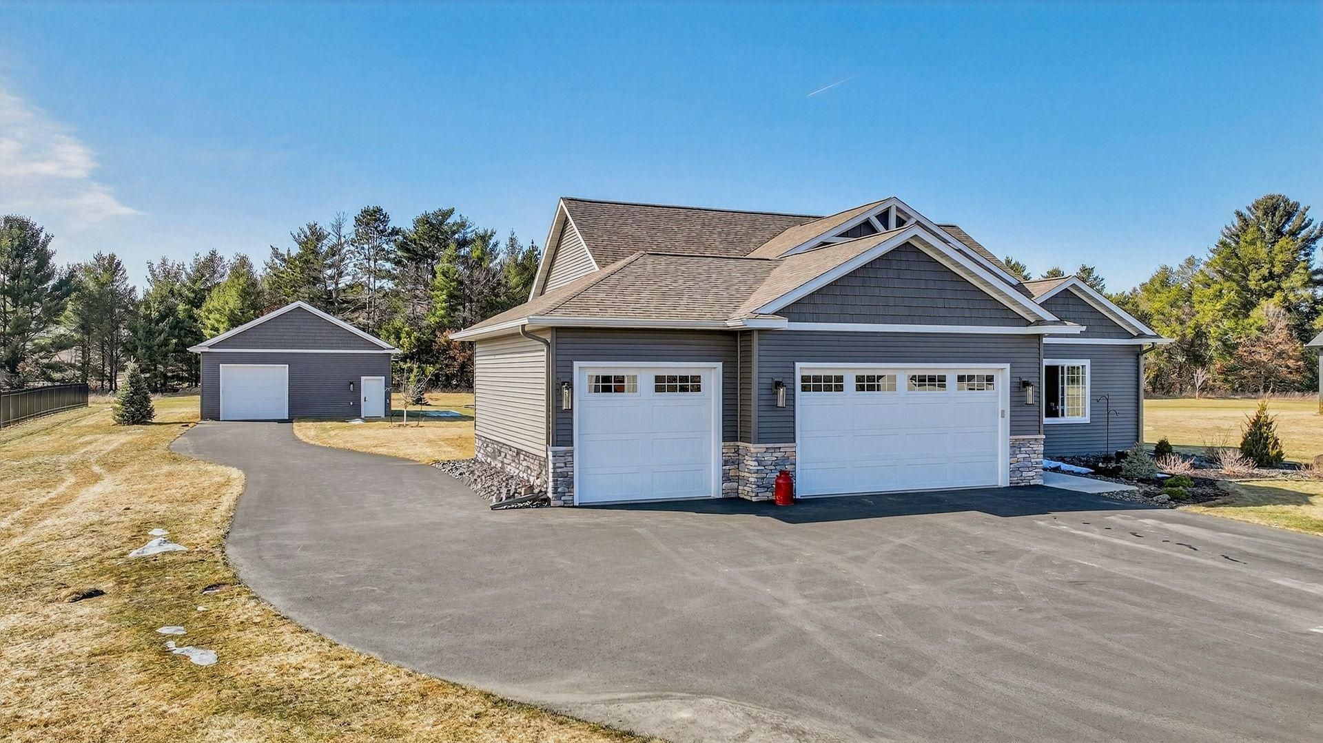 One of Eau Claire's finest homes has just hit the market in one of the newest and most desirable southside neighborhoods. This exceptional property offers the perfect combination of location, craftsmanship, and rare bonus features you simply won't find in most homes. The main level welcomes you with 9-foot ceilings and an open-concept design that feels bright, spacious, and inviting. The show-stopping kitchen is built for gathering and entertaining, featuring a large center island, tile backsplash, upgraded millwork, new granite countertops (Feb 2026), walk in pantry and quality finishes throughout. The private owner's suite is a true retreat with tray vaulted ceilings, a walk-in closet, and a walk-in shower. Additional guest bedrooms are generously oversized, providing comfortable space for family, visitors, home offices, and perfect for teens. On a separate level with in floor heat, the family room offers a cozy yet expansive space anchored by a gas fireplace, perfect for relaxing evenings or hosting guests. First-floor laundry and custom entry cubbies add everyday convenience. Car enthusiasts, hobbyists, and business owners will appreciate the attached heated three-car garage, but what truly sets this property apart is the impressive 30x40 (1,200 sq ft) heated detached shop. Partially finished and complete with its own restroom, this versatile space is ideal for a workshop, recreational storage, equipment, or future customization. Properties in this development rarely offer this level of additional heated square footage. Step outside to a meticulously landscaped, private backyard enhanced by an irrigation system, thriving berry bushes, and a picturesque orchard?creating a refined outdoor setting that delivers both convenience and natural beauty. When it comes to location, layout, and lifestyle flexibility, this home delivers on every level.